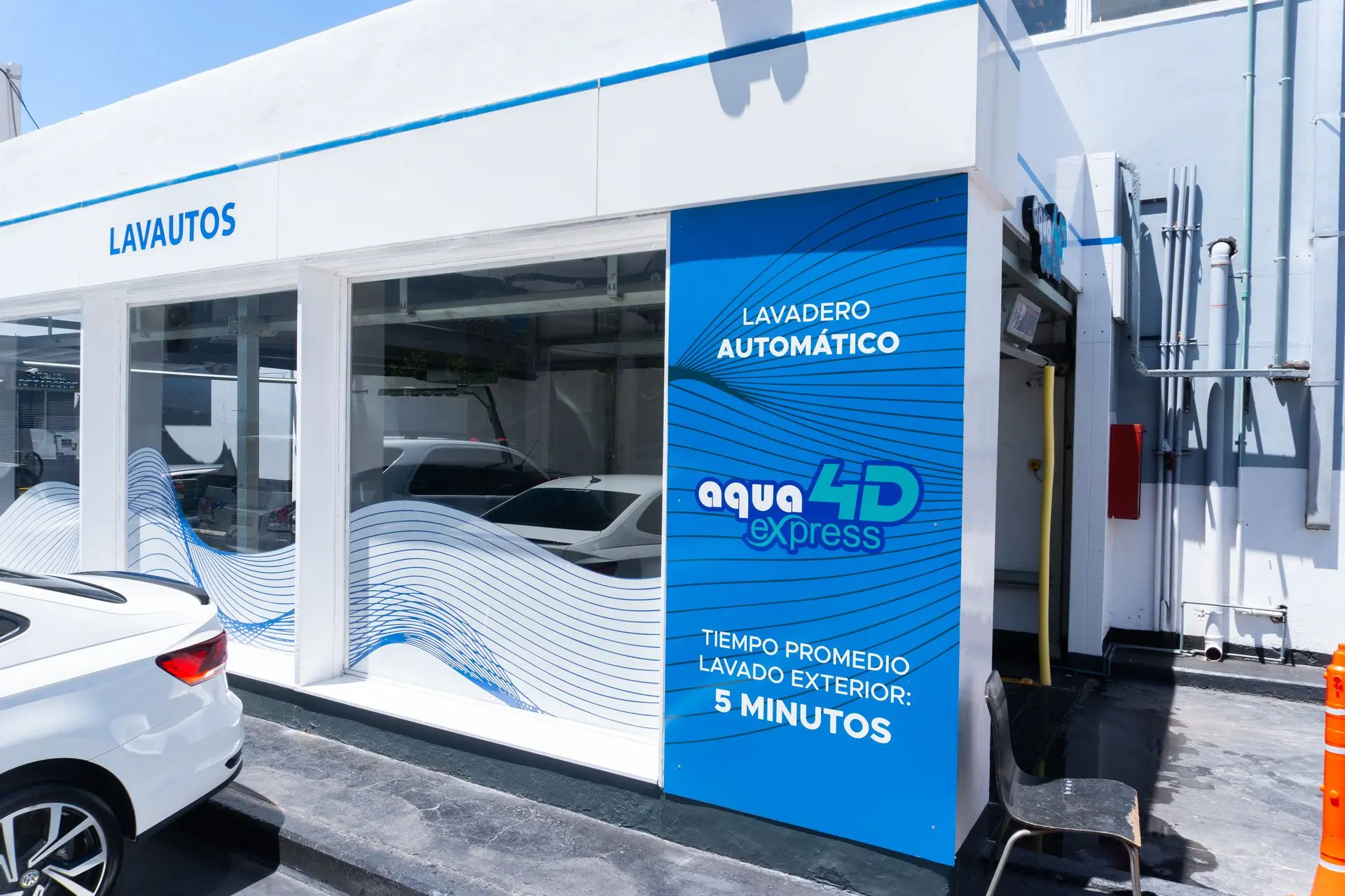 La tecnología más alta de Aqua Express se ve en su máxima expresión en la 4D, consiguiendo lavar un vehículo en menos de 6 minutos promedio.
